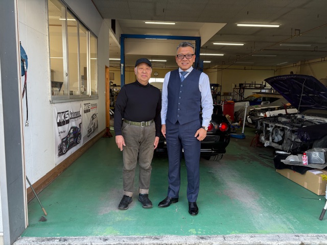 小倉クラッチ社長様来社 2025年11月14日 最終更新日時 : 2025年11月14日 g-kitakanto 小倉クラッチ社長様来社 昨日ですが、いつものように作業をしてると突然、小倉クラッチの小倉社長が来社、びっくりしたのなんのってお話をお聞きすると、宇都宮に来たのでついでに寄ってみるかと、鹿沼市にある旧事務所に行かれたそうで、すると様子が違ってて驚かれ、調べてみたらこちらに移転されたとのことで、わざわざお越しくださいました。恐縮です。せっかになので記念撮影していただきました。作業中のまんまの格好でちょっと差がありすぎですが。