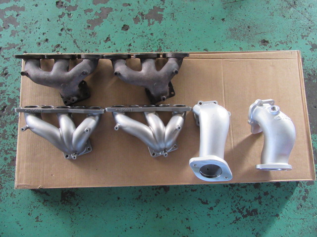 32GTR タービンからのオイル漏れのためHKS GT3 SSタービンに交換。タービン交換ついでにということでお客様が東名パワードのエキマニと タービンアウトレットをご用意一緒につけることに。