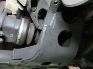 タイベル交換中の33GTR。作業は順調に進んでいてほぼ終了というときに、なんの気無しにドラシャ付近に目をやるとパックリ。ドラシャインナーブーツが切れてる。それも左右とも。