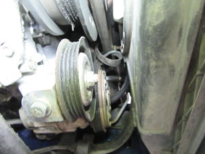 おっ絡まってる。更にコンプレッサー、ロックしてる、これもなんとか修理することになりました。更に更に、パワステフルードが、リザーバータンクから、溢れ出ている、これも原因追求して、どうなるのでしょう。